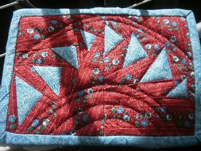 Ich finde ihn sehr gelungen, Muster, Farbzusammenstellung und auch das Binding. Das klappt bei mir noch nicht so gut.