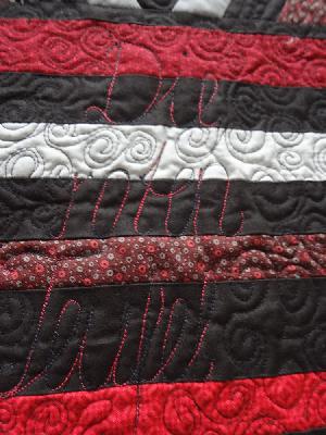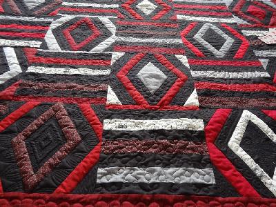 In den Diamant-Blöcken habe ich verschiedene Muster immer nur in die schwarzen Flächen gequiltet. So poppen die farbigen Streifen/Diamonds schön raus.