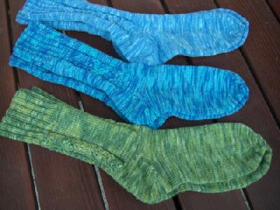 So sieht die Wolle gestrickt aus. Schwiegermutter hat schon drei Paar Socken verstrickt.