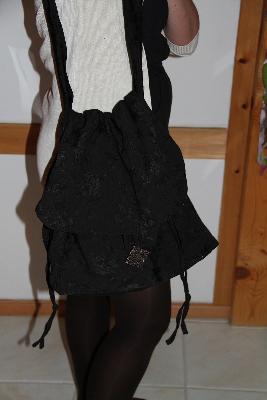 Dank der Kordeln kann ich die Tasche auch zu einem kleineren Beutel machen.