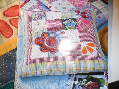 Am Freitag hab ich die neue "Lena's Patchwork" gekauft, das mit den Blumen - die Ideen darin fand ich ganz zauberhaft und ein Kissen hab ich gleich mal nachgearbeitet mit den Stoffen, die ich so daheim hatte.