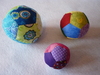 1 Windmühlentasche, 1 runde Tasche, 3 Bälle (ca. 12, 10 u. 8 cm Durchmesser) u. 1 Fussball (10 cm Durchmesser).