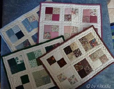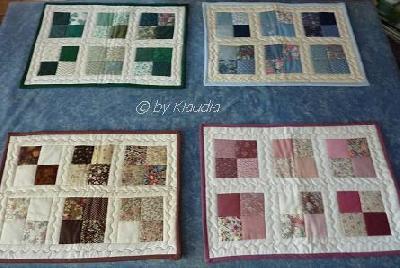 Deine Tischsets sind wunderbar und ich werde mir die Idee mit den 4 Farben merken. Wirklich klasse!!! _________________ Liebe Grüße,