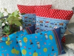 Ja ich hab doch tatsächlich fünf Kissen genäht. Eins für mich ganz alleine und die anderen 4 also 2 s2 für die Nachbarjungs - die hatten an Ostern*hüstel Taufe.