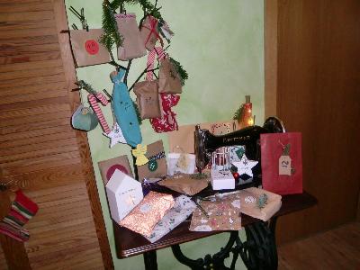 Ich hab nun heute mit der Weihnachtsdekoration begonnen und zuerst mal den Adventskalender rund um meine alte Nähmaschine aufgestellt. Evt kommt noch eine Lichterkette dazwischen.
