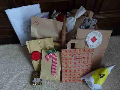 Ich habe meine 24 Geschenke in ein Korb gelegt. Dieses Jahr bin ich mit Adventskalender gut beschenkt worden. Ich brauch früh mindestens 15 Minuten dafür. Ich freute mich trotz der Arbeit darüber.