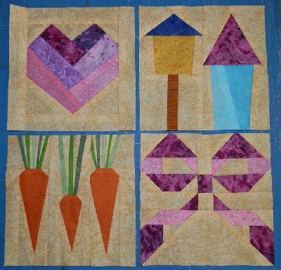 Ich bin mal so frech, und stelle mein Februar-Ufo schon ein. Habe es beim Aufräumen meiner Stoffe gefunden . Es sind vier Blöcke von einem Wandbehang. Ich habe im Oktober 2010 bei Regina Grewe einen Kurs "Nähen auf Papier" gemacht und dabei diese Blöcke angefangen. Es fehlen noch 5 weitere Blöcke und der Rand des Wandbehangs. Die Vorlagen dafür habe ich im Kurs bekommen.