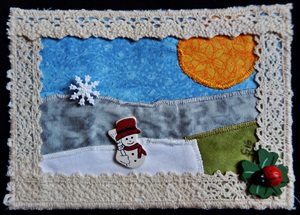Ich habe eine schöne Karte von von Nadel-Maus bekommen - leider sieht man auf dem Foto nicht, dass sie Bommel aufgenäht hat. Der kleine Schneemann ist so niedlich!