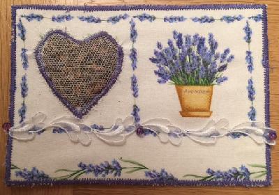 Links unter dem Herzchen sind frische Lavendelblüten unter dem Netzstoff. Eine tolle Idee.