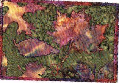 gebatikter oder selbstgefärbter Stoff ? mit gesteppten Hebstblättern. |