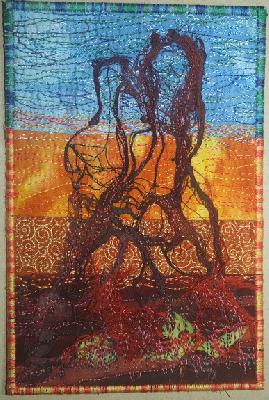dann hast Du aber einen guten Blick gehabt ! In dem gebatikten Stoff Blätter zu erkennen und durch das Steppen sichtbar zumachen. |