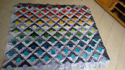 Sehr schöner Quilt. Die Farbtupfer auf dem schwarz- weiß geben eint tolle Gesamtwirkung.