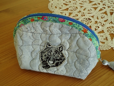 Des weiteren ist das Geburtstags Geschenk für mein Cousinchen Soni fertig geworden - Sie liebt Wölfe - deshalb wurde von mir noch in dem gestickten Wolfsnotfall Täschlein noch ein Wolfspaneel versteckelt:
