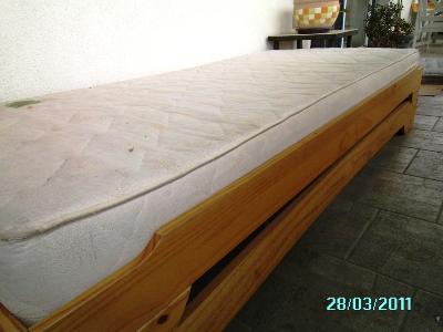 die ausrangierte Matratze von Junior und das billigste Bettgestell, das man auftreiben kann -
