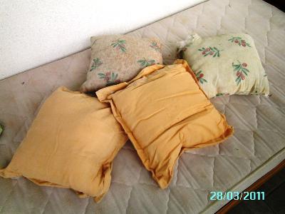 ein paar alte Kissen, häßlich und zum Teil kaputt, die man normalerweise wegwirft -