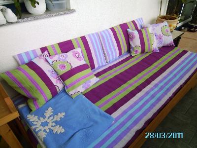 Ein herrlich bequemes, großes Sofa auf dem überdachten Balkon. Ideal für heiße Sommertage (so sie denn kommen.... )