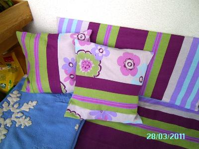 Dann mache frau das Ganze erstmal sauber, stecke die Kissen in Wama und verpasse ihnen eine neue Hülle als Inlett.