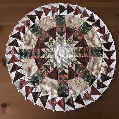 Jetzt hat auch der dritte Kreis einen Rahmen aus Flying Geese. Bin gerade fertig geworden.