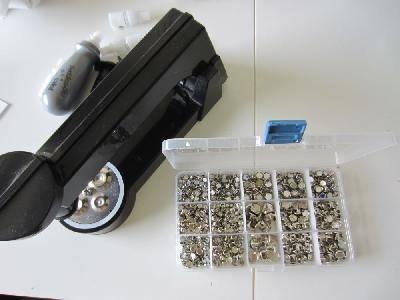 Mein Nähzimmer platzt aus allen Nähten und ich trenne mich nun von einigen Dingen. Hier biete ich eine Nietenmaschine samt Zubehör samt Nieten in gold und silber und bunt und runt und flach und sternig und klar. Ich möchte das alles nicht verkaufen, lieber hätte ich Stoff dafür, aber nur PW-Stoff.