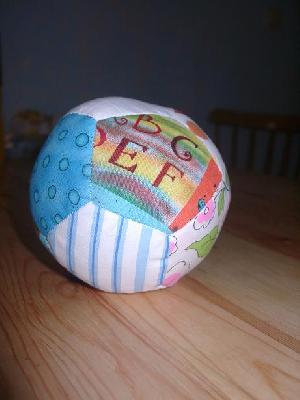 Diesen Ball hab ich für meinen Großneffen genäht, der im Juli auf Besuch kommt mit seinen 4 Monaten *freu*. Hat total Spaß gemacht. Eigentlich wollte ich noch ein Glöckchen einarbeiten, aber das hat nicht so gewollt wie ich es wollte