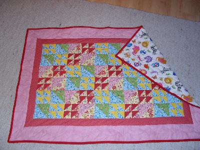 Meine Babydecke für meine kleine Nichte ist jetzt auch endlich fertig. Eine kleines Quilt-Chaos - war nämlich mein erster Versuch im quilten (mit der Maschine). Zum Glück sieht man´s auf dem Foto nicht so !