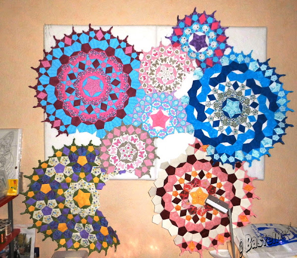 das erste Viertel von meinem Passacagli-Quilt ist geschafft. Von 33 Rosetten sind nun 8 fertig.