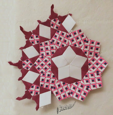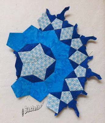 Ich habe beschlossen, die Einbuchtungen an meinem Passacaglia-Quilt etwas abzumildern und ihn auch etwas zu verkängern. Langsam habe ich das Gefühl, dieser Quilt wird ein "Endlos-Projekt", ständig fällt mir während des Nähens wieder was Neues dazu ein.