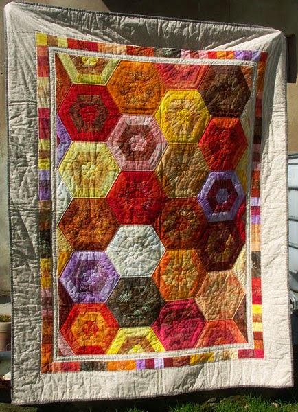 Verfasst am: 07.04.2015, 16:37 Titel: Batik-Hexagon-Quilt - fertig! |