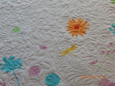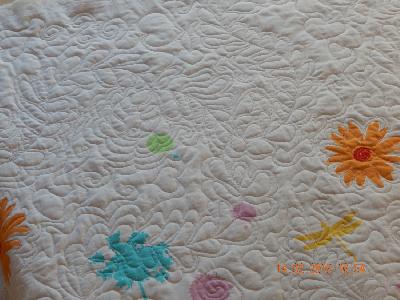 Du hast das wunderschön gemacht! In den schönen Blumen möchten meine Augen immer weiter auf deinen Quiltlinien spazieren gehen! Da könnte ich mich reinträumen... _________________ Tschüssn