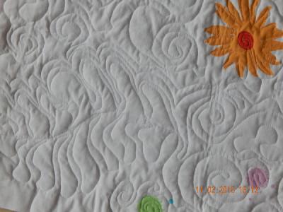 Diese Wäsche hatte ich letztes Jahr noch gekauft, weil mir das Muster so gut gefiel. Nun habe ich 177er Freudenberg reingepackt und einfach losgequiltet -muss mich ja einüben für den wedding