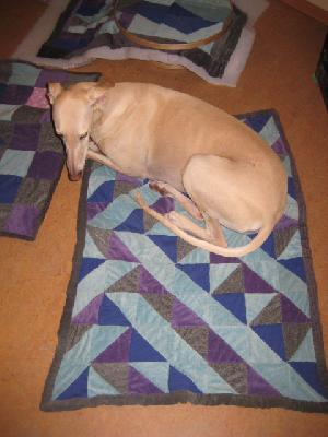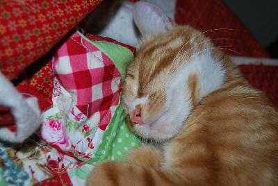 Ich hab da auch so einen zu Hause, der sich dauernd einmischt und sich auf den Stoffen breit macht. Aber als Quiltpolizist nicht besonders tauglich, wie man sieht...