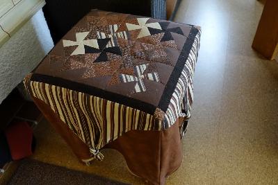 Hier eine Idee was man mit einem alten Hocker anstellen kann. Der Bezug ist aus einem Flic-Flac Musterblock entstanden, dem Hocker entsprechen angepasst und mit dickem Vlies unterlegt. Das gute Stück steht bei uns direkt vor dem Kacheloffen und ist in Dauer- Benutzung und vor dem Sperrmüll gerettet.