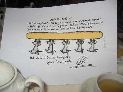 Danke colli für die leckeren Brötchen und die gewohnte Kellnermannschaft. War schön, von unseren gewohnten Frühstücksbringern umsorgt zu sein.