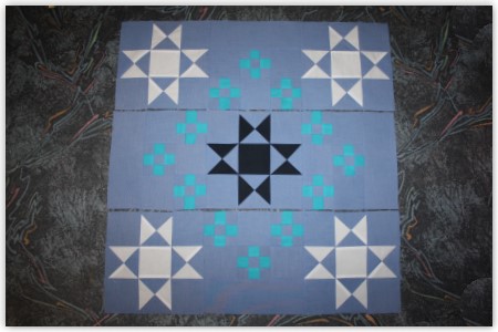ich fürchte, bei Deinen schönen Blöcken hat sich ein Fehler eingeschlichen - der cremefarbene Streifen muß an der anderen Seite, wo nur ein 9Patch-Block ist, angenäht werden.