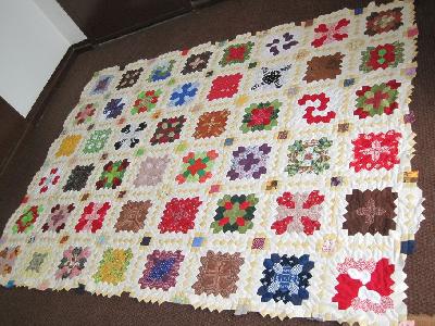 Ich habe meine Swapblöcke in meine neue Bettüberwurfdecke mit eingenäht. Jetzt kommt noch ein 10 cm breiter Abschlußstoffrand ran.