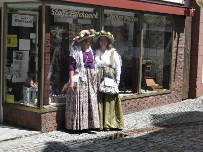 Doris hatte dann irgendwann die Idee, dass wir ja jede einen großen Hut unser eigen nennen, die man mit schönen Blumenkränzen schmücken könnte und dazu ein blumiges Kleid oder ein entsprechender Rock und schon sind wir fertig für die Parade: