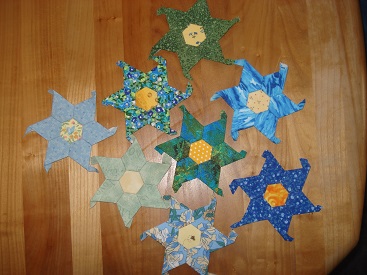 die Farbkombi Blau-Grün-Gelb spiegelt sich auch in diesem Projekt wider: handgenähte Blumensterne.