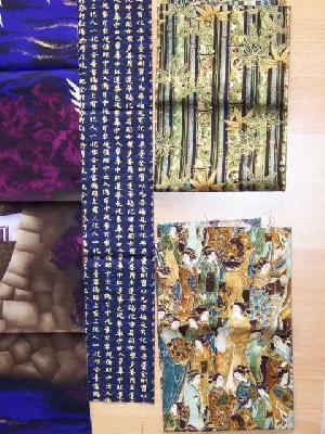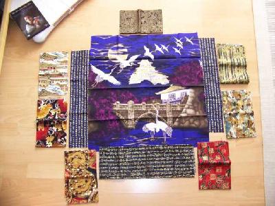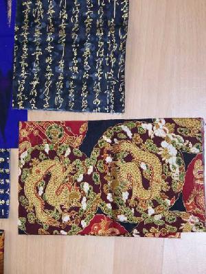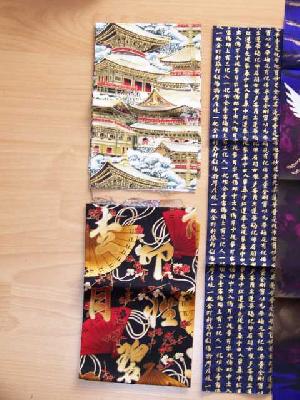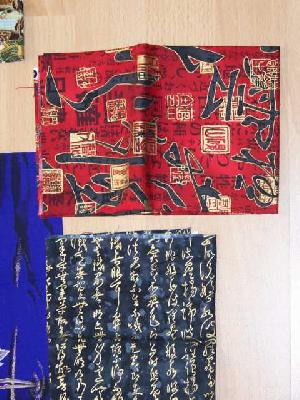 Mich hat die Vielfalt an Stöffchen ein wenig erschlagen und ich habe mich auf zwei rote Stöffchen für meinen geplanten SBS beschränkt. Dafür hat mein Göga zugeschlagen und sich mit meiner Hilfe schöne Asiastöffchen für einen Wandbehang herausgesucht. (Stöffchen aussuchen kann er schon mal ganz gut, wenn er nur nicht mit nähen anfängt ... sonst muss ich noch um meinen Platz an der NäMa kämpfen... *lol*)