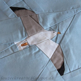 Hier mein zweiter Block: die Möwe Jonas, die ist aber eher klein im Verhältnis zum Leuchtturm. Normalerweise sollen 3 davon genäht werden.