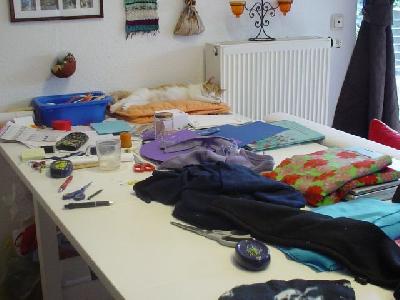Bubu als Nähhilfe auf meinem Nähtisch, daß ist aber auch die einzige Stelle, wo ich ihm erlaube zu sein in meiner "Nähstube".