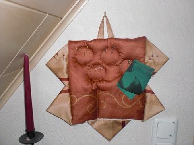 Da meine Zettelwirtschaft, Erinnerungen usw. überall herum geflogen sind. Das Wandutensio ist komplett nach meiner Idee entstanden. Schade ist nur das es unten durch Tasche abnähen absteht. |