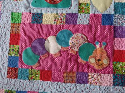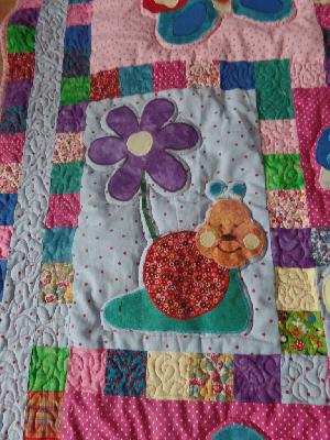 Na das sieht schon mal gut aus dein FMQ, du must dich nur trauen. Deine Decke ist echt süß, da wird sich die Mutter sicher darüber freuen.  _________________ Grüßle Quiltsammler