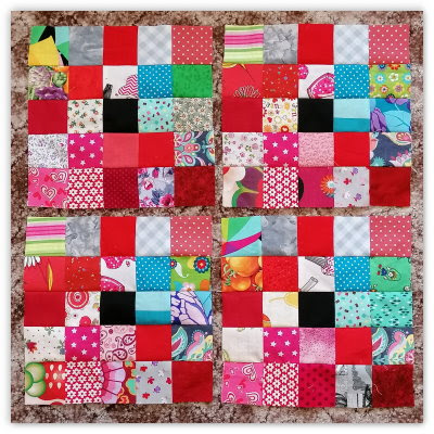 Für einen Block im 9er Patch brauche ich also jeweils 4 Stück 25er Patch.