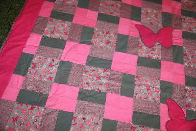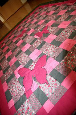 Genäht wurden die über 500 Teile mit der Maschine. Auf dem letzten Foto erkennt man gut die gequilteten Schmetterlinge.