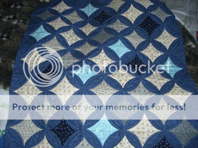 Ich finde das Muster einfach total genial (auch wenn der Stoffverbrauch verboten hoch ist. Ich habe ne Menge dabei gelernt und weiß auch schon ein paar Dinge, die ich beim nächsten mal anders machen würde (ich denke, wenn ich mir einen Quilt zum Eigengebrauch machen sollte, wird es ein Cathedral-Window...).