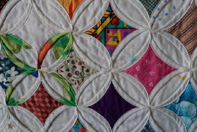 Hier mal was ganz Traditionelles, Cathedral Windows, da ich ja eine recht faule Socke bin und niemals nie etwas von Handnähe hab ich diese zwei Quilts komplett mit der Maschine genäht. Der weiße Quilt war der erste. Die Stoffe stammen aus dem Kinderzimmer meiner Jungs die längst erwachsen sind (Vorhänge, Bettwäsche, Stubenwagenbezug usw.) es ist eine schöne Erinnerung an ihre Kindertage.