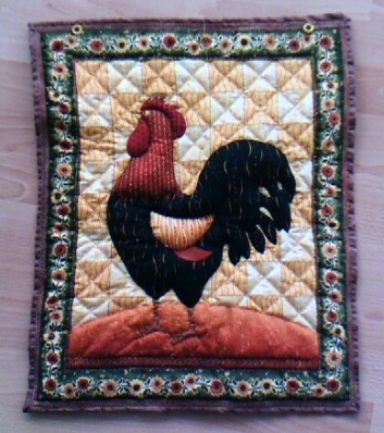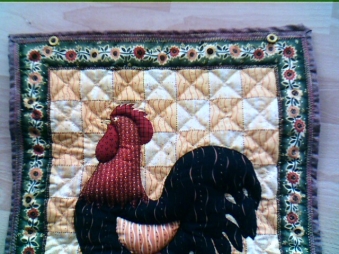 Leider sieht man das nicht so gut, aber das Hahn ist auch ausgestopft. Der Rest wurde mit Maschine und per Hand gequiltet.