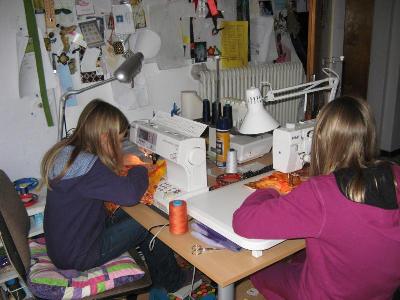 Sie waren beide furchtbar fleißig, haben selbst geschnitten, gebügelt und gequiltet, nur beim Ausschneiden der Kreise musste ich helfen, denn der Rollschneider ist noch nicht so das Lieblingswerkzeug der beiden Damen. Trotzdem finde ich, dass sich das Ergebnis ihrer Bemühungen durchaus sehen lassen kann: Links seht ihr den Quilt von Livia, 11 Jahre, er heißt "Herbstglühen" und es ist ihr erster Quilt. Victorias Quilt ist rechts und schon ihr dritter, sie hat ihn "Sonnenaufgang" genannt. Sie ist inzwischen schon recht geschickt und hat sogar den Reißverschluss alleine aufgenäht.