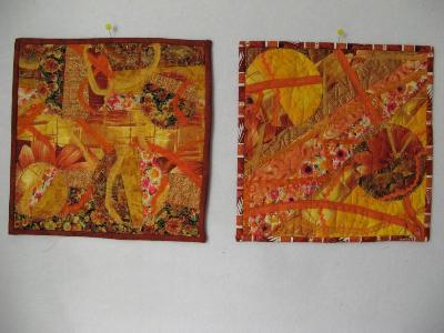 Nur das Prinzip der darned quilts hab ich auch nach dem googeln noch nicht ganz kapiert, man macht da also eine zusammengesetzte/bestickte/verzierte Oberfläche und schneidet daraus Kreise, die man anderswo wieder draufsetzt - aber was macht man dann mit den entstandenen Löchern, wo die Kreise vorher waren? Oder muss man da zuerst ein größeres Teil herstellen, als man nachher haben will, damit man noch die Kreise ausschneiden kann?
