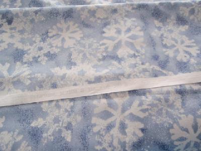 ich hab noch ein Stück - volle Breite x 1,40 cm von einem Debbie Mumm Stoff Eiskristalle - Winterhellblau mit grau.